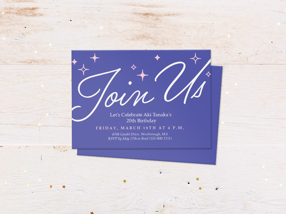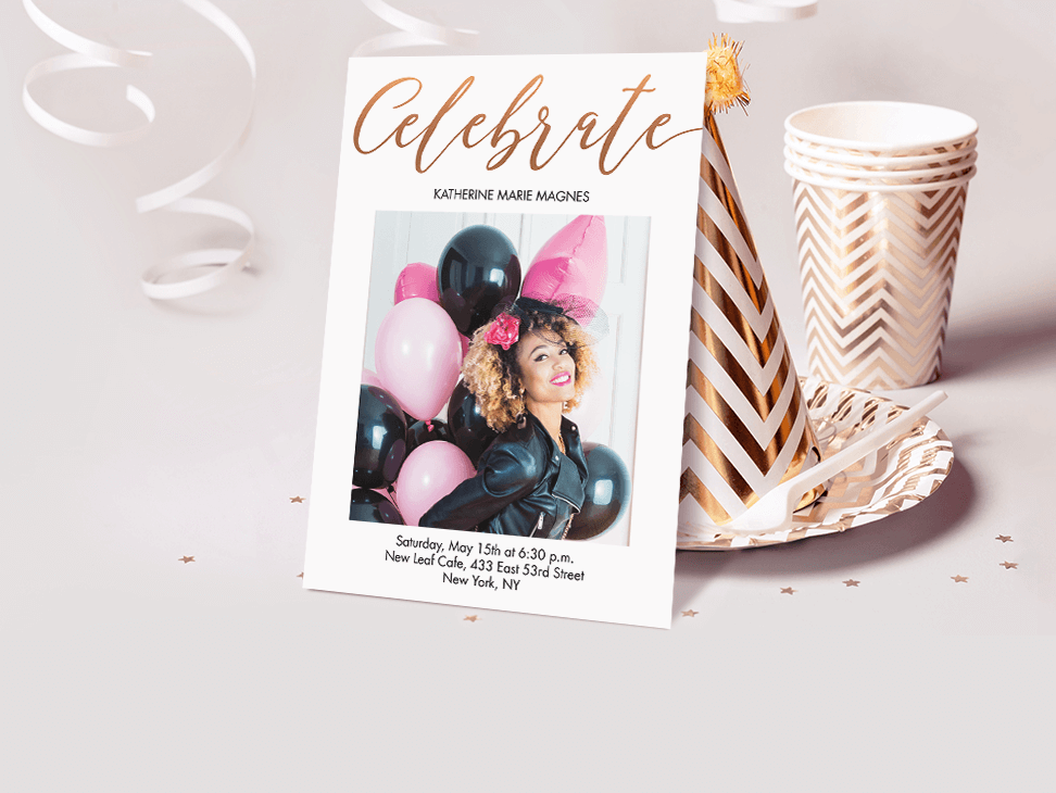 Create the perfect party invitations for any special event and make sure your friends and family are there. Browse beautiful designs to make personalized invitations for birthday and holiday parties, weddings, showers and any simple celebration. Whether formal, semi-formal or casual, it's easy to find the right theme for any occasion.