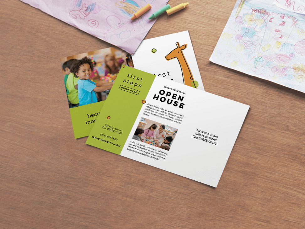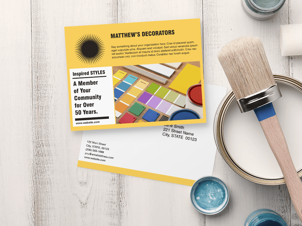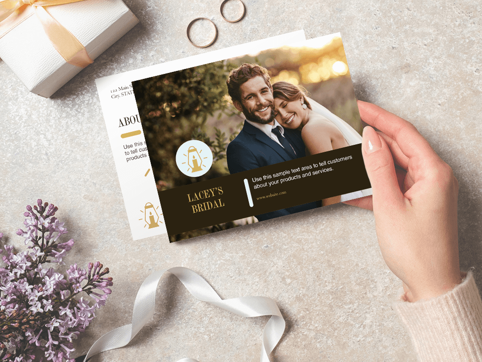 Create visually striking postcards to promote your brand. Distribute them on the street or have them prominently displayed in your business for clients and prospects to take with them.